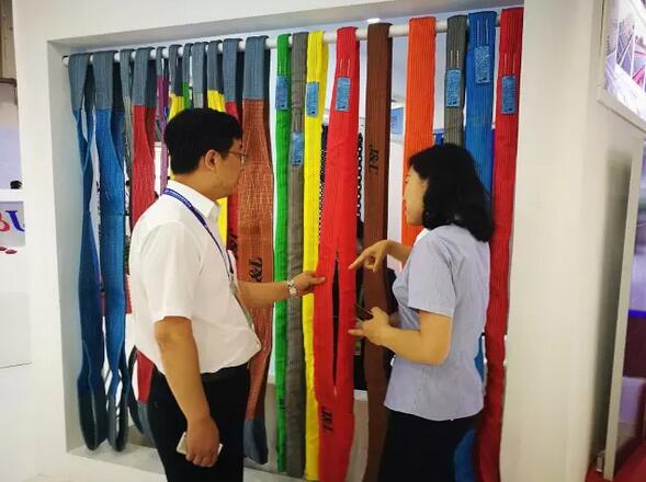 巨力索具展位采取開放式布局,以綠色環保為主題進行特裝。占地面積150㎡,展品涵蓋吊裝帶、鏈條、鋼絲繩、卸扣、纜索、鋼拉桿等系列產品。